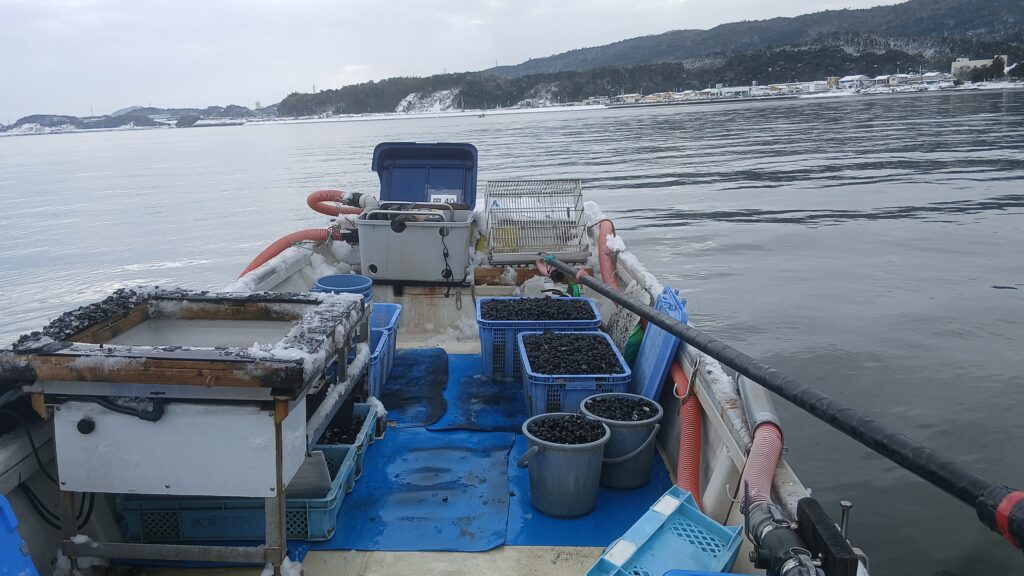 この時期のシジミ漁は、シジミが湖底の土に潜っているため、時間も体力も夏の倍以上使いますが、